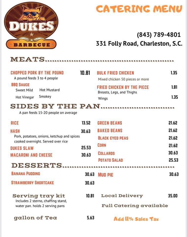 Dukes BBQ Menu